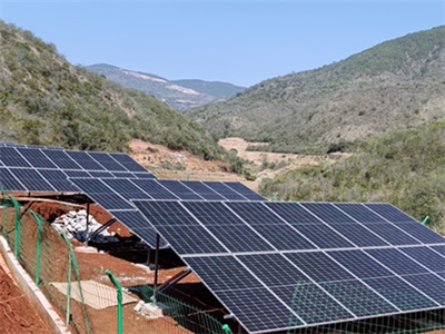 2、建设了一个光伏提水工程解决黄栎树村小组82户居民的饮用水,净扬程142m,管道距离804m,水泵为立式多级离心泵:主泵为4kW,170m,4m³/h,辅泵3kW,156m,2.8m³/h;光伏水泵控制逆变系统功率5.5kW,光伏组件总功率8.32kW。晴天日提水20m³。