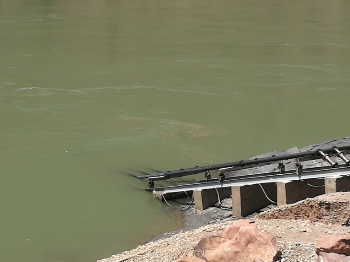 总净扬程1067m,管距9700m,主管道DN250,满负荷流量240m3/h,标准晴天日提水1300m3。